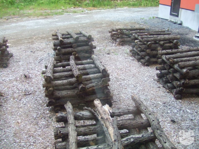 謎の木組み。シイタケの原木になる木だろうか。北湯沢店で食事を終えたばかりだったので、さすがにこの時は利用せずそのまま出てきた。