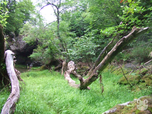 ここが行き止まり、源流部になる。岩の隙間の奥まった場所から湧き出ているのだろう。このあたりの岩は溶結凝灰岩といい、火山噴火の噴出物で形成されている。形成されたのは数万年前といい、地形的には大きな変化もなく在り続けているようだ。