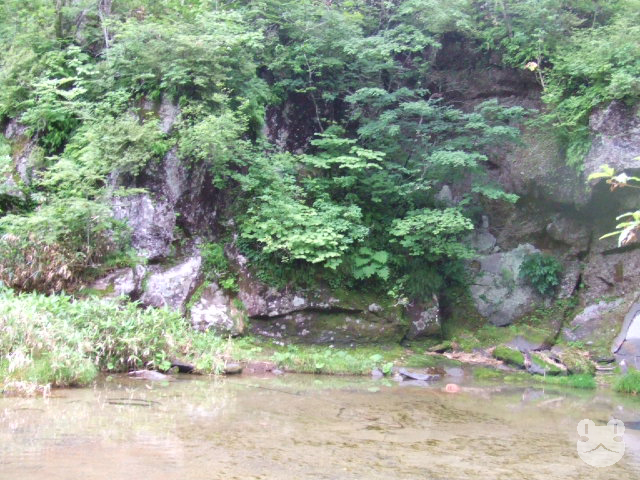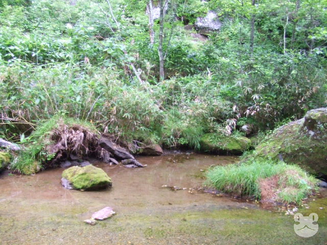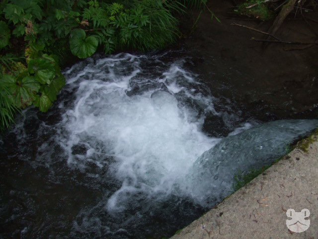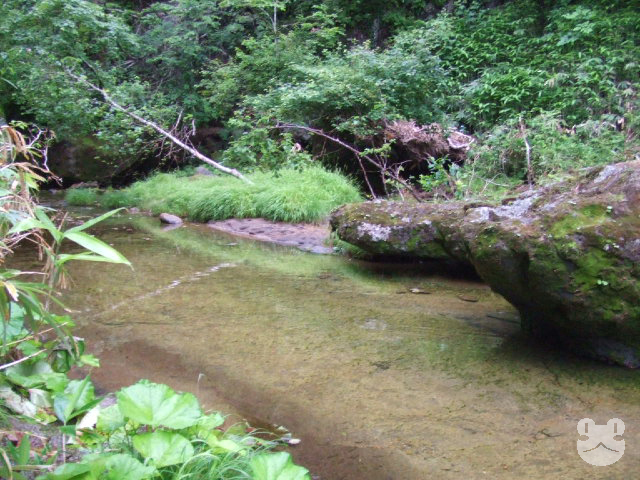 慌てて岸に上がったが、これは湧き出たばかりの水で日もあまり照らない場所だからなのだろうか。深さは無いものの川底もはっきりと見える透明度。汚染のない綺麗な水なのだろう。
