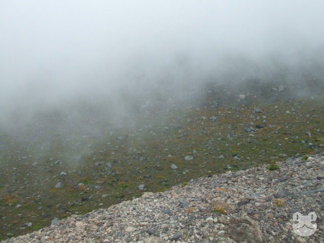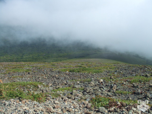 外輪山の内側、溶岩ドームの方は相変わらず濃霧に埋もれていた。