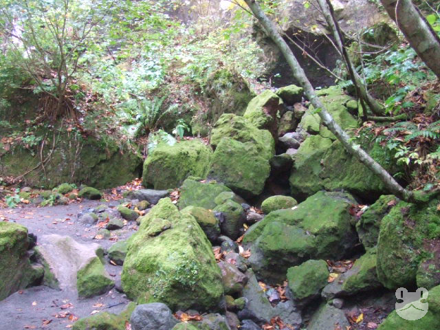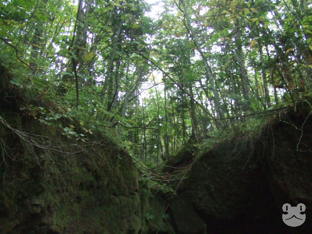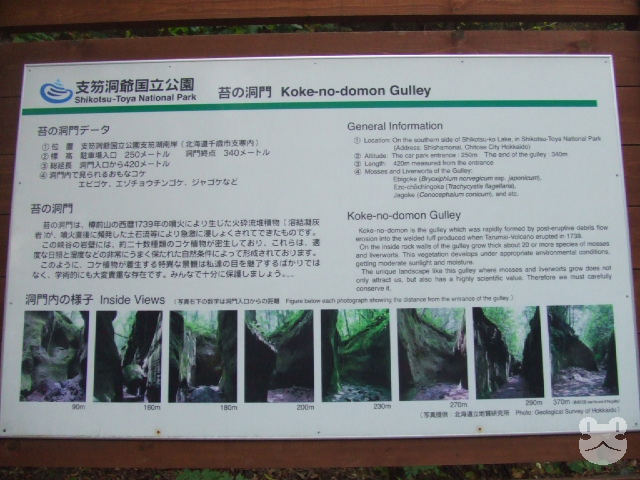 苔の洞門(閉鎖)子供の頃に連れられてきたことのある、支笏湖畔の苔の洞門。ここも樽前ガロー>>2と同じく樽前山系の噴火で形成されたゴルジュ地形である。こちらは樽前ガローと違い、川の流れがない。そのため以前はこの渓谷の間が遊歩道のようになっており、歩いて見物することが出来た。名の通り、苔の壁が作る洞窟のような神秘的な光景に身を置き楽しむことが出来るスポットだった。