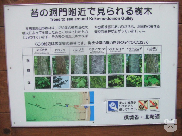 苔の洞門(閉鎖) 苔の洞門(閉鎖) 子供の頃に連れられてきたことのある、支笏湖畔の苔の洞門。ここも樽前ガロー>>2と同じく樽前山系の噴火で形成されたゴルジュ地形である。こちらは樽前ガローと違い、川の流れがない。そのため以前はこの渓谷の間が遊歩道のようになっており、歩いて見物することが出来た。名の通り、苔の壁が作る洞窟のような神秘的な光景に身を置き楽しむことが出来るスポットだった。 その後しばらくして、洞門内で崩落が起きたため以前のように内部に入るのが制限されたというのを聞き、それから更に年を経た2009年に再訪してみた。変わらず洞門の奥には立入り出来ないとは聞いていたが、実際どのようになっているかが気になった。 続きを読む洞門の入口、ネイチャーセンター。ここを通過して洞門への道へ出る。 建物の内部には周辺の見どころと動植物の写真が展示してあった。美笛の滝>>99の写真も展示されていた。 スタッフの方が洞門の風景写真も見せてくれた。やはり紅葉の名所なのだろう。 何処から来たのかを訊かれたものの、遠方ではなくほぼ地元からなのでなんだか申し訳なく思う。駐車していた他のクルマも地元ナンバーが多かったと思うが。やはり洞門内部に進むことは出来ないようだが、保全のための寄付を募っていたので、心ばかりを納めさせてもらい、洞門への道を進む。 このような案内看板が行く先々に設置されていた。 小雨がぱらつき始めたので、センターで傘を貸し出してくれた。 各々傘を持ち、林道の遊歩道を歩く。一本道だが、微妙に勾配があるためいい運動になる。 ネイチャー系の観光地には必須の看板。実際にこの周辺、支笏湖道路にも昨今のクマ騒動の以前から頻繁に出没するのだ。 大切なことだが、角ばった感の無い手作り感がなんだか良い。 ここで必ず見られるわけでもないと思うが、別の地元の森林ではゴジュウカラやハシブトガラあたりはよく見られる。 この天気だったこともあって、この時は鳥の姿はほぼ見られなかった。 砂浜のような、開けた場所に出ると、洞門入口が近い。 突き当りに看板のようなものが見える。 クランク状に曲がっている。台風か、積雪の影響だろうか。 緩やかに登っているのがわかるだろうか。 この一帯は広葉樹の樹林なのだそうだ。明治期の伐採や自然災害もあり新しく生成されたものらしく、樹齢はまだ若いものばかりらしい。近年も台風の被害にも遭っており、年輪を重ねるのが難しそうだが、豊かな森なのだろう。 洞門前の看板。洞門内部の写真が展示されている。子供の頃に見た光景がここにあった。 コケにも様々な種類がある。昔は人も多く、じっくり見比べる余裕は無かったが。我が家もそうだが当時苔の種類にまで関心を持つ人も限られていたのではないか。 一々看板を撮影していたが、ここに限らずその場で立ち止まってゆっくり読むのも気が引けてしまい、現地でちゃんと読んだ試しがないように思う。かといって、要らないものでは決してないのだが。帰宅して撮影したものをじっくり読むタイプの人間である。 洞門への入口、というより、入口を望む観覧台が設置されていた。 迫力すら感じる年季の入った看板だ。近隣の学校で作ったと思われる標語も掲げられている。 さすがに周辺の地形は険しい。 観覧台階段の脇のコケが美しかったもので。 今見てみると結構高い。相当の段数を上ったようだ。 これを上り切ったところが 最上部、行き止まりだ。 柵の向こうに、洞門が口を開けている。この内部をかつては歩くことが出来たのだが… 途中に、崩落した岩盤が道を塞いでしまった箇所があり、崩落は今後も続くだろうとのことで、立入りが禁じられていた。 上ってきた方を振り返る。中々の険しさだ。 洞門の上部。木の根が剥き出しになっているが、いずれこの部分も崩れるのかもしれない。 洞門内部に向けて撮影したものもあったのだが、ブレが酷く綺麗に撮れておらず、以前に処分してしまったようだ。 この状況ではあまり慰めにもならない状態だったが、遊歩道を再整備するのも現実的ではないだろうとは思った。 その後、大雨の影響で観覧台も被害に遭ったようで、それを機に完全閉鎖になったらしい。ネイチャーセンターも閉鎖されており、以来再開の兆しは見られない。自然保護を考えると、それで良いのだろう。 しかし、ここから風不死岳を挟んだ東側に同じような地形を見られる場所があり、まったく幻の景色というわけではない。 駐車場もなく、かなり歩くことになり観光地化されていない場所だが、筆者も近年訪れているので、また後日に上げることにする。 小出しに引っ張ってばかりで申し訳ない… 畳む #遊歩道 #林道 いいね ありがとうございます! 2026.1.28(Wed) 03:12:49 道央,千歳