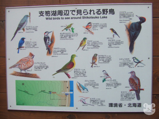 建物の内部には周辺の見どころと動植物の写真が展示してあった。美笛の滝>>99の写真も展示されていた。