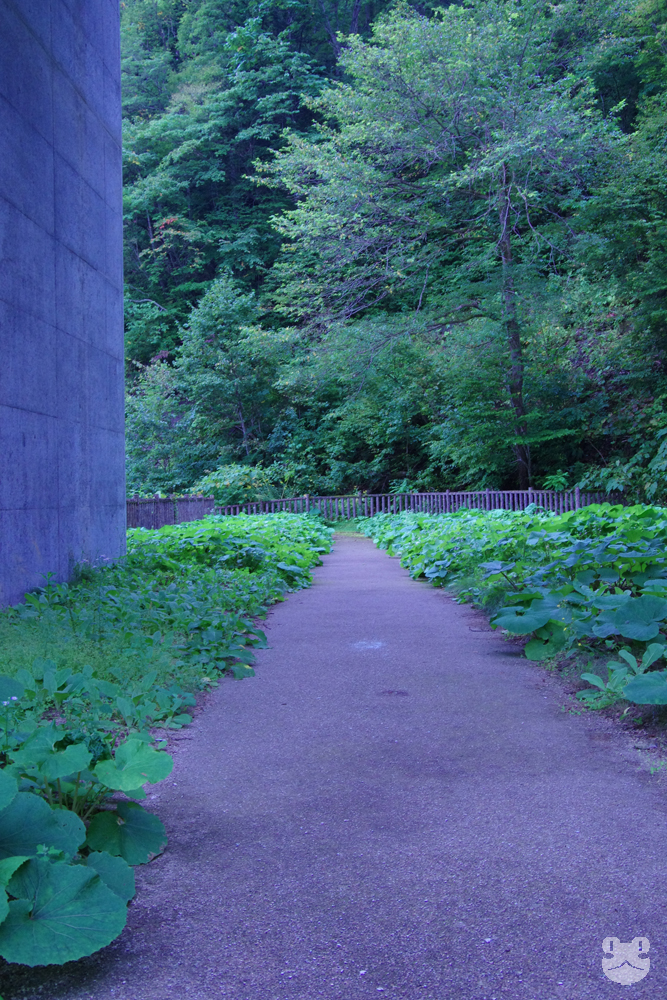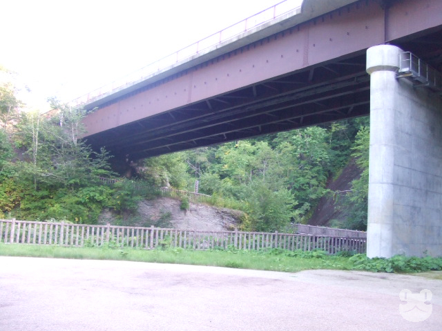 戻って道道へ階段を上がり、駐車場を経由して上の橋へ。