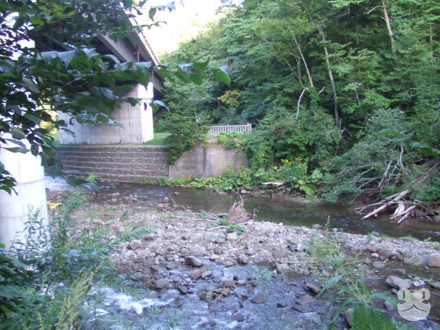 202601230204519-admin.jpg川を渡り、道道の橋脚部分(橋の真下)で振り返ったところ。