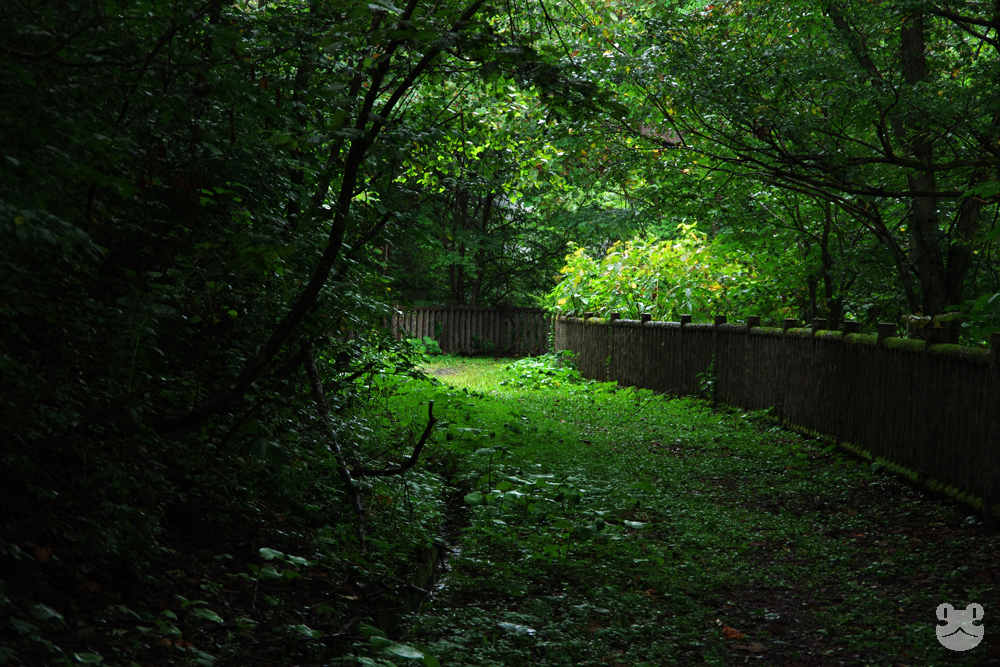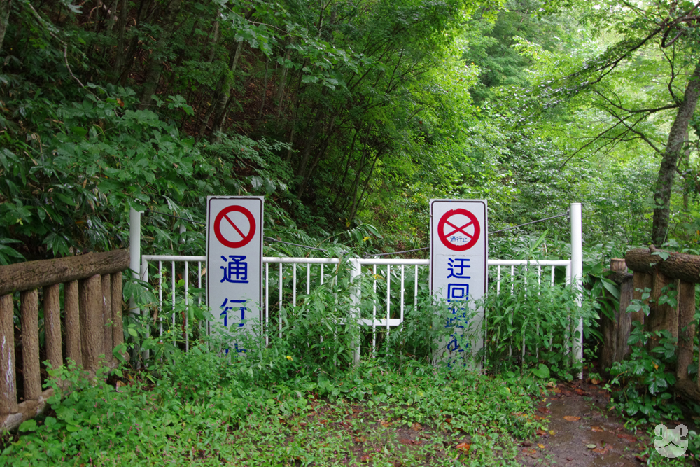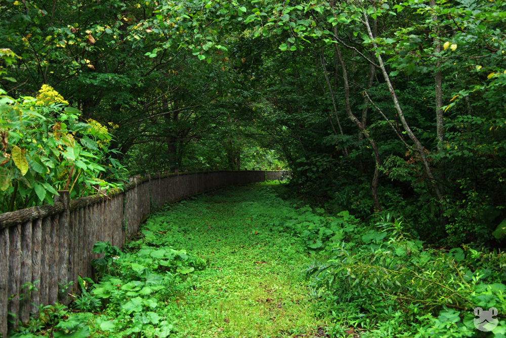 おそらく、今の道道が開通する前の旧道(もしくは林道)だったのではないだろうか。遊歩道にしては広く、車1台分は通れる幅だ。新たに遊歩道のためだけに開削するとは思えないので、林道を遊歩道に転用したものと思われる。