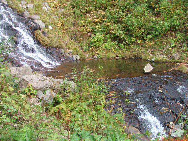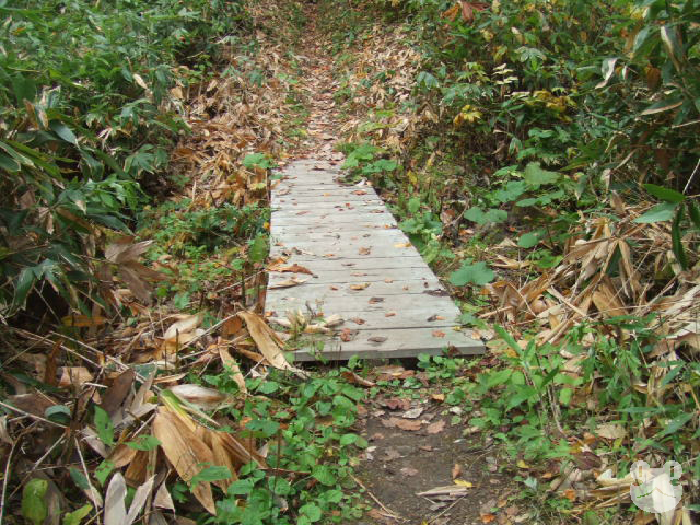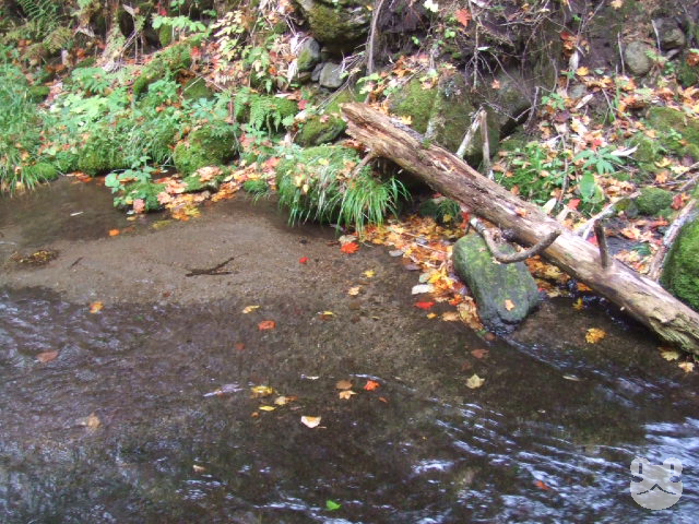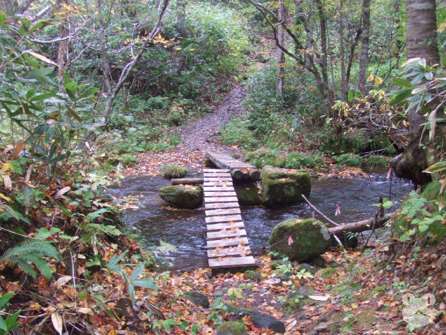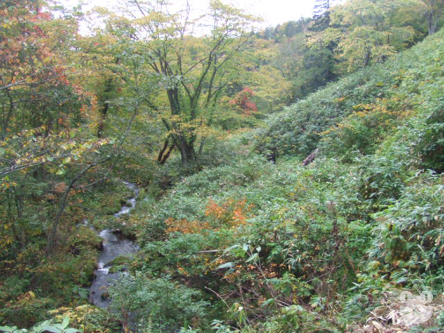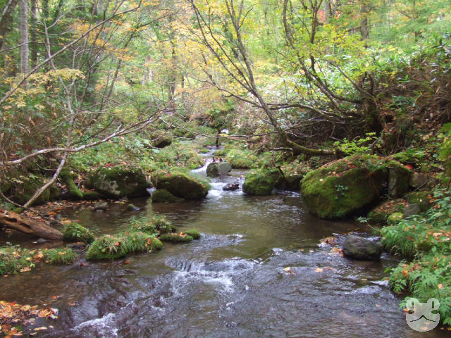 2009年の10月に友人を伴って訪れた。入口の分岐から林道を車で数分、駐車スペースからは15〜20分程歩くと辿り着くことが出来た。小川には簡易の橋が架けられて遊歩道が整備されていたが、踏み跡は途中ところどころ水が浸かっており足元を濡らす箇所もあった。